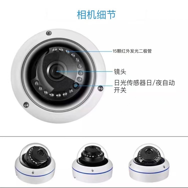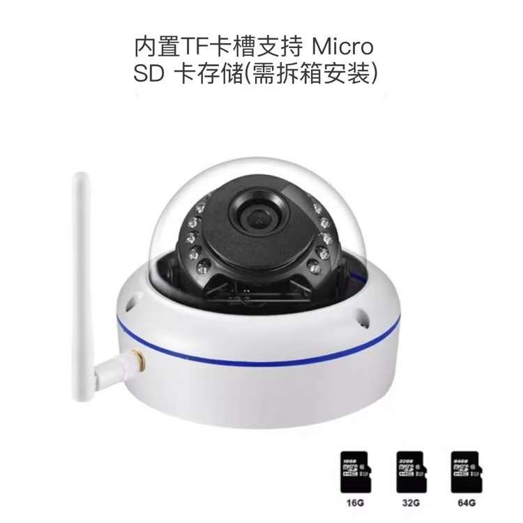 网络无线WIFI高清1080P防水监控红外夜视4MP插卡防爆半球摄像头